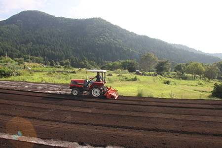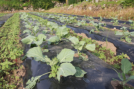 村内の農場では春の野沢菜(とう立ち菜)から始まり、山菜(ぜんまい、こごみ等)、玉ねぎ、キュウリ、なす、トマト、キャベツ、ズッキーニ、パセリ、大根、バジル、ローズマリー、ネギ、トウモロコシ、スイカ、ユウガオ、唐辛子、サツマイモ、枝豆、ブロッコリー、ホウレン草、等々四季折々いろいろな野菜が作られています。丹精を込めて作られた、野沢温泉のおいしい水と空気で育った自家栽培野菜と有機米コシヒカリでおもてなし致します。